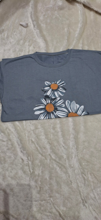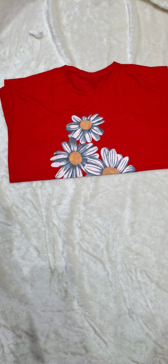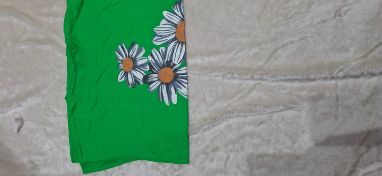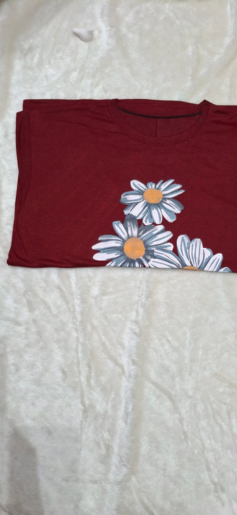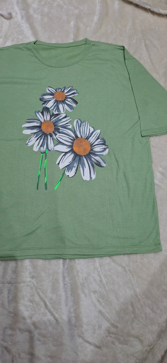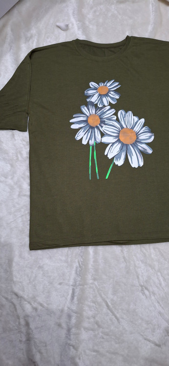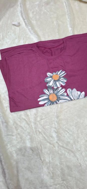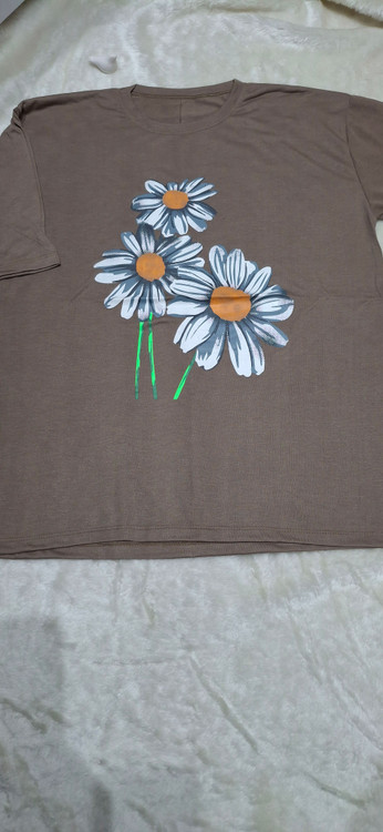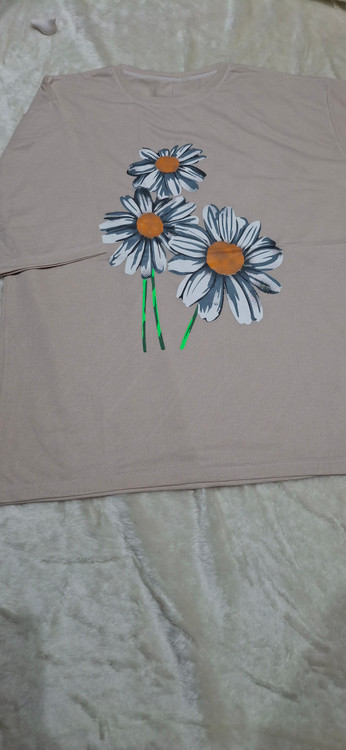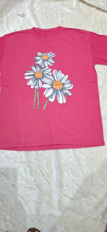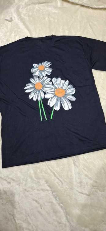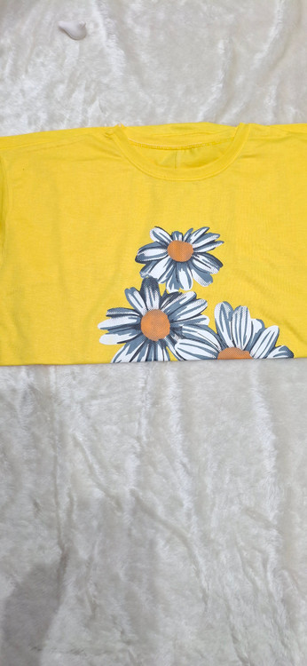 تیشرت لانگ بابونه آستین سه ربع دخترانه نخ پنبه