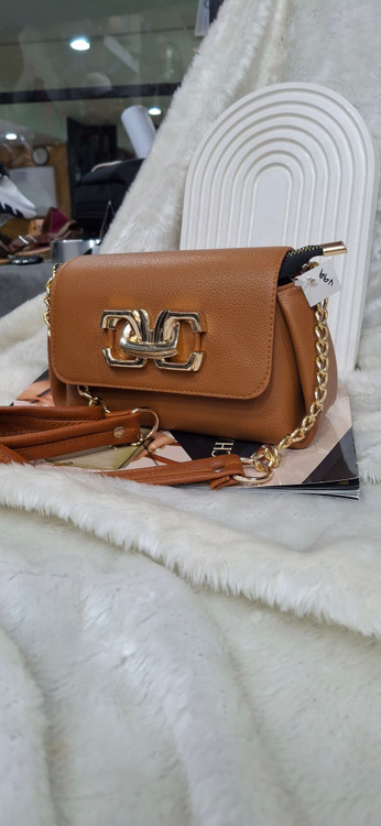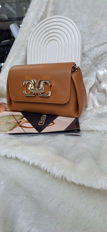 کیف سگک طلایی با طرح خاص و شیک دارای بند بلند دوشی و چرم درجه یک