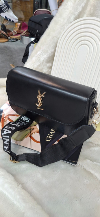 کیف پاسپورتی دوشی ysl با بند پهن دوشی مارک دار